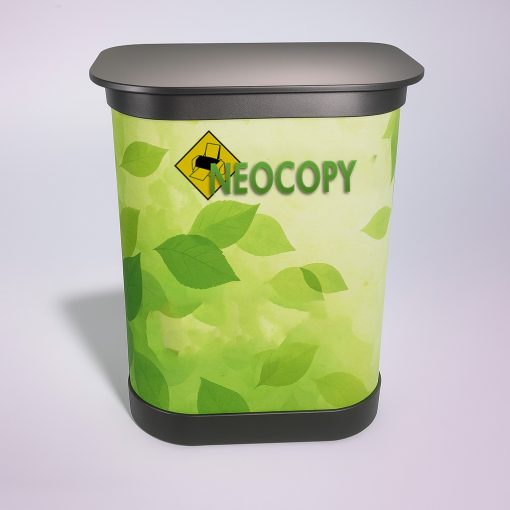 Mostrador portรกtil NEOCOPY 2 en 1 con ruedas. Ideal para ferias y eventos, combina funcionalidad y estilo. Su amplio interior permite transportar grรกficos y materiales promocionales con facilidad. ยกLigero, resistente y fรกcil de mover!