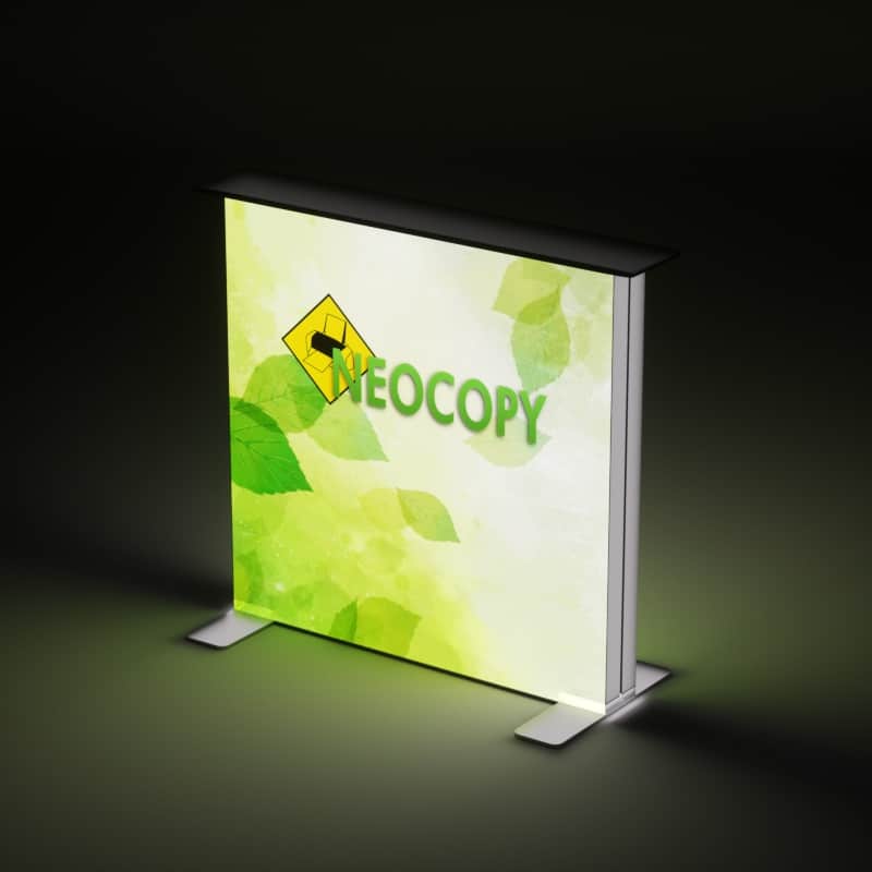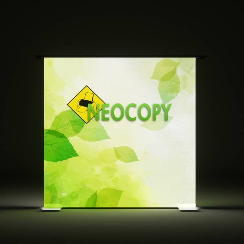 Dependiendo de la configuración elegida, el paquete incluye el bastidor de aluminio reforzado, el sistema de iluminación interna LED de bajo consumo y la gráfica textil personalizada fabricada con tejido especial para retroiluminación.