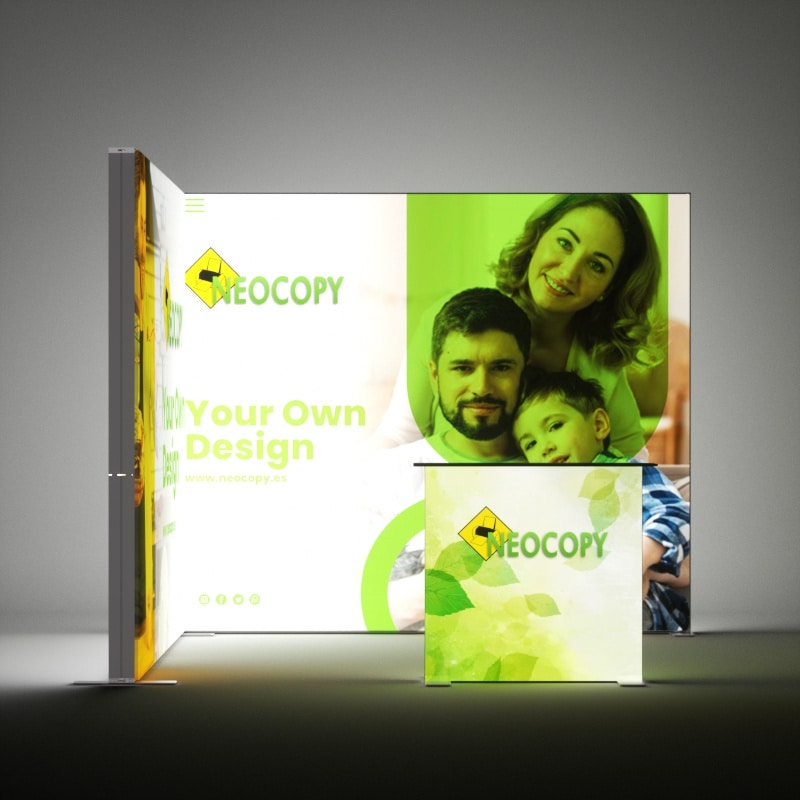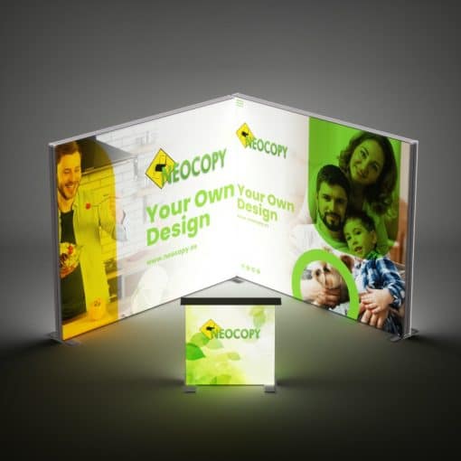 Stand Retroiluminable LED 3 x 2,5m – Kit Modular Doble con Muros en L y Mostrador