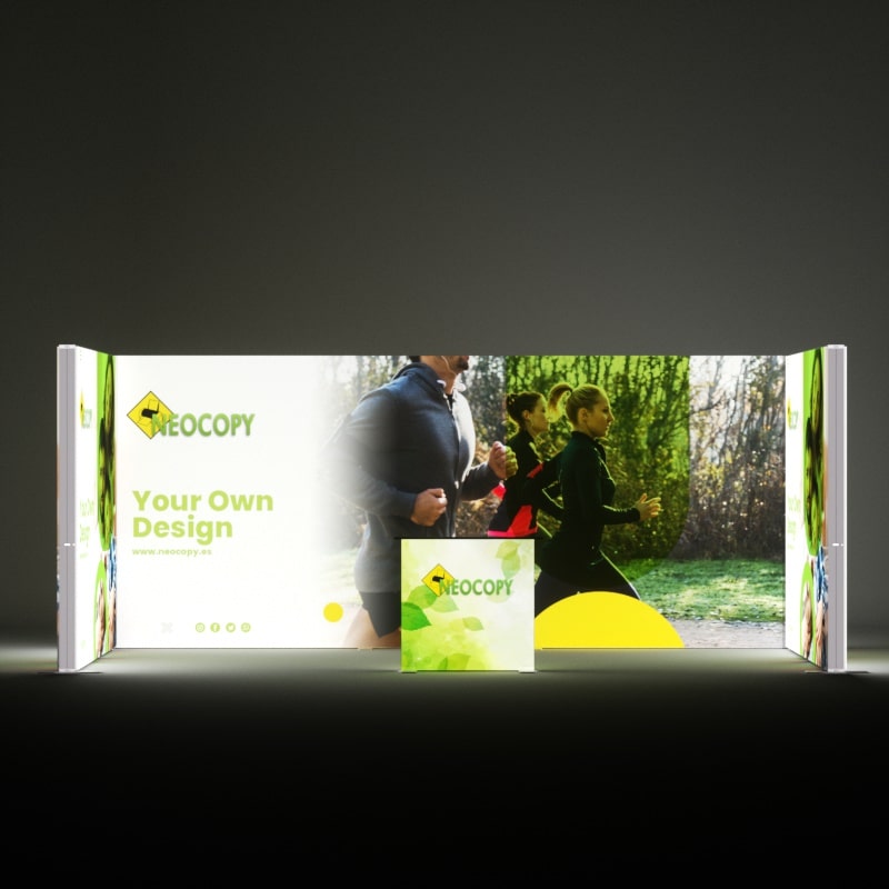 Portada > Shop > Stand Retroiluminable LED 6 x 2,5m – Kit Modular Gran Formato con Muros Laterales y Mostrador