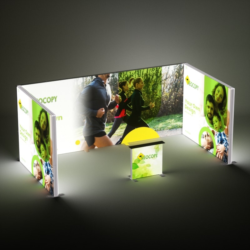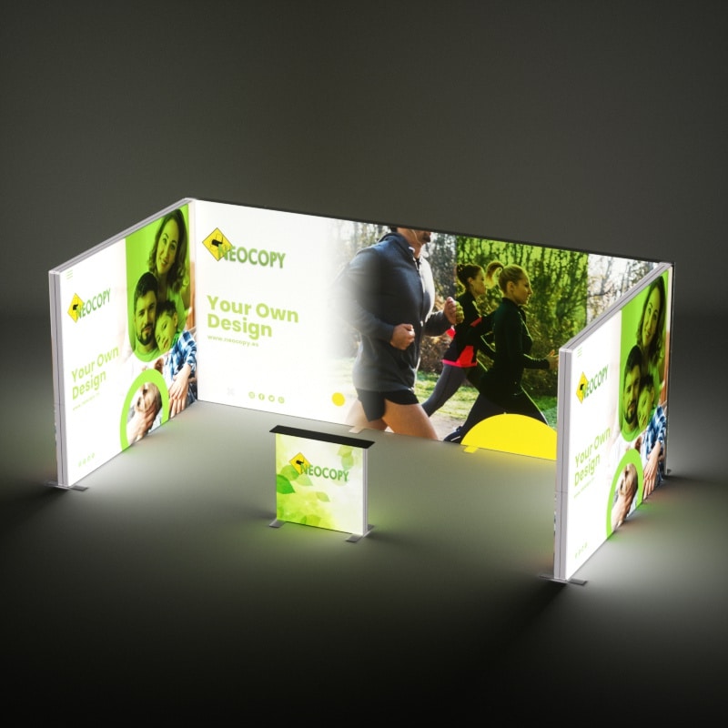 Stand Retroiluminable LED 6 x 2,5m – Kit Modular Gran Formato con Muros Laterales y Mostrador