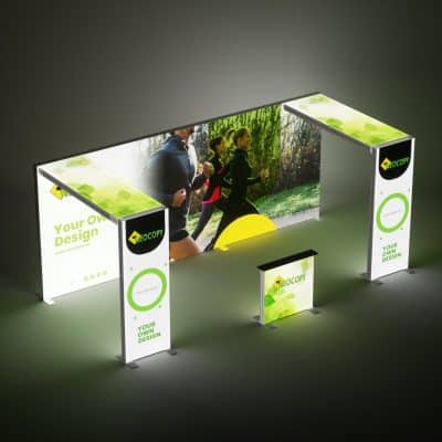 Stand Retroiluminable LED 6 x 2,5m – Kit Modular Gran Formato con Muros Laterales y Mostrador