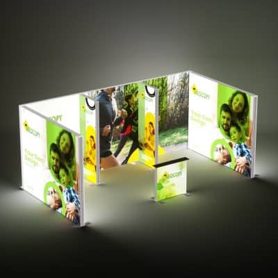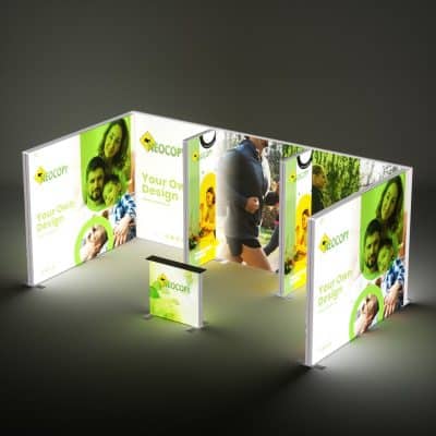 Stand Retroiluminable LED 3 x 2,5m – Kit Modular Doble con Muros en L y Mostrador