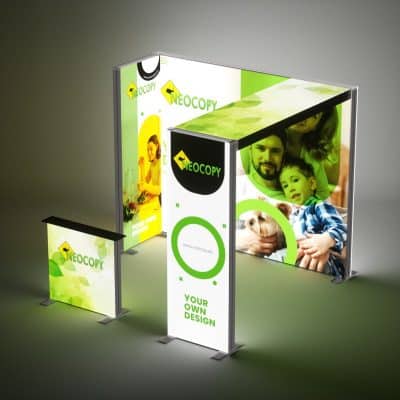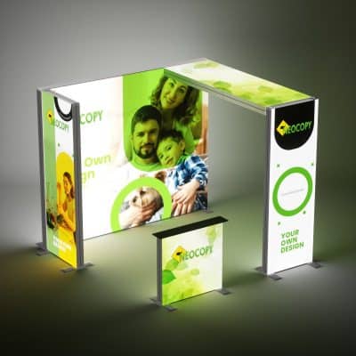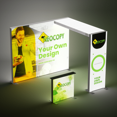 Stand Retroiluminable LED 6 x 2,5m – Kit Modular Gran Formato con Muros Laterales y Mostrador