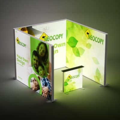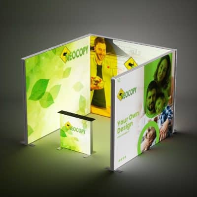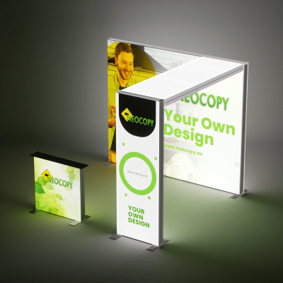 Stand Retroiluminable LED 3 x 2,5m – Kit Modular Doble con Muros en L y Mostrador